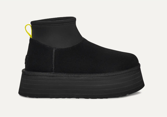 - Contrafforte in camoscio, tirante posteriore in fibre di poliestere riciclato (100%), mascherina in camoscio, gambale in neoprene, fodera della mascherina in UGGplush™, realizzata con lana rigenerata (60%) e lyocell TENCEL™ (40%)